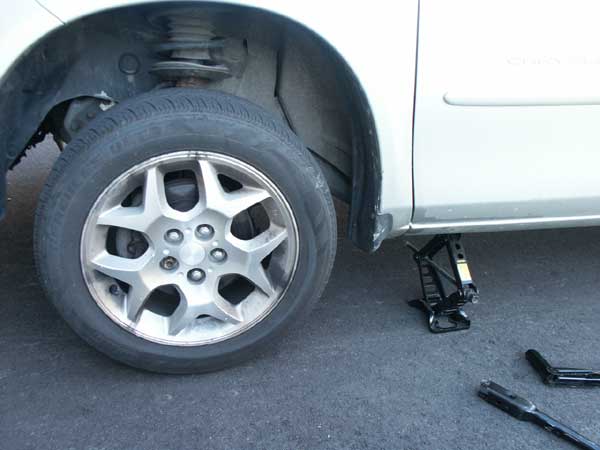 Now that the tire is off the pavement we remove all wheel lug nuts (which we loosened off previously) and remove the wheel. (picture 2)